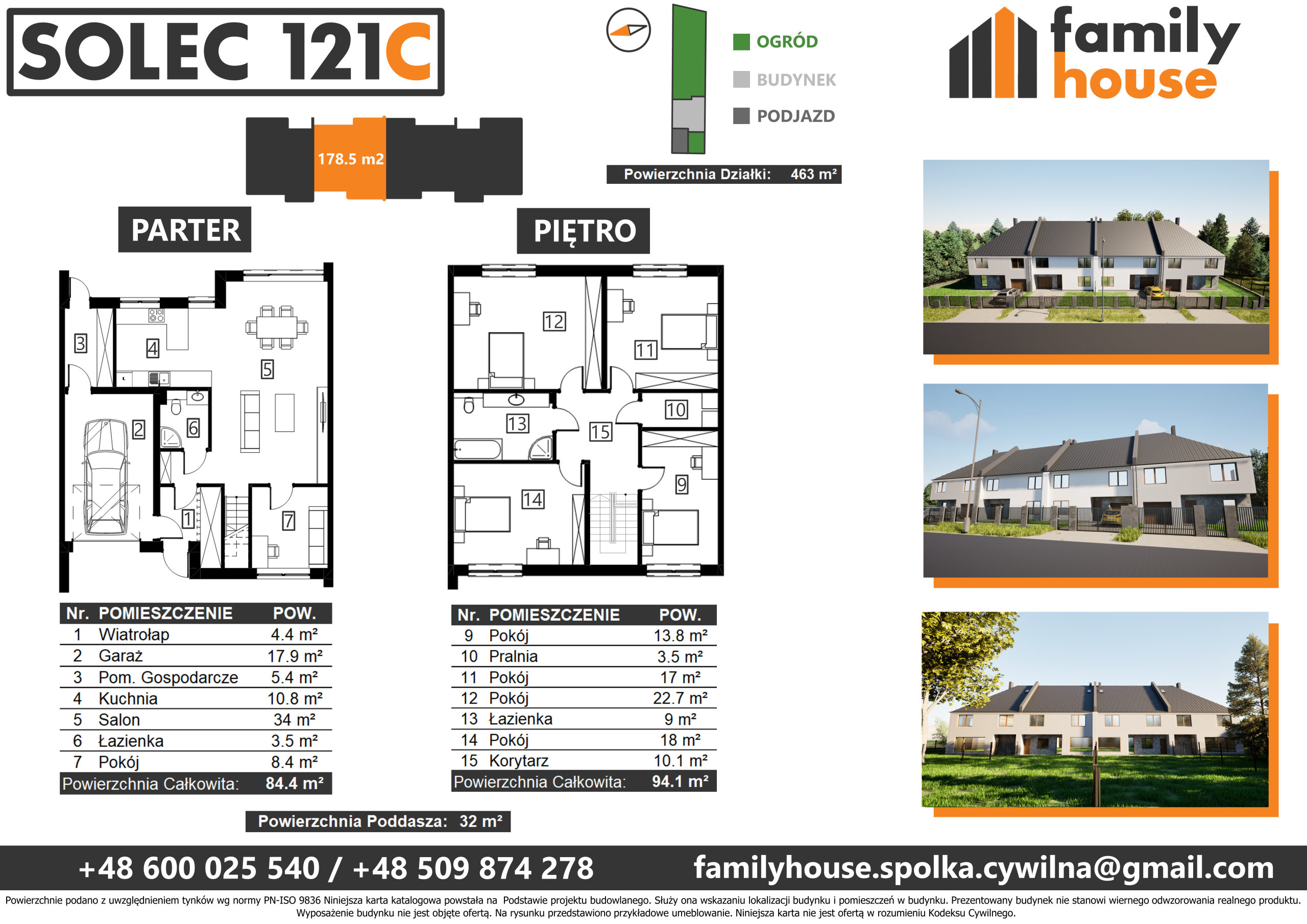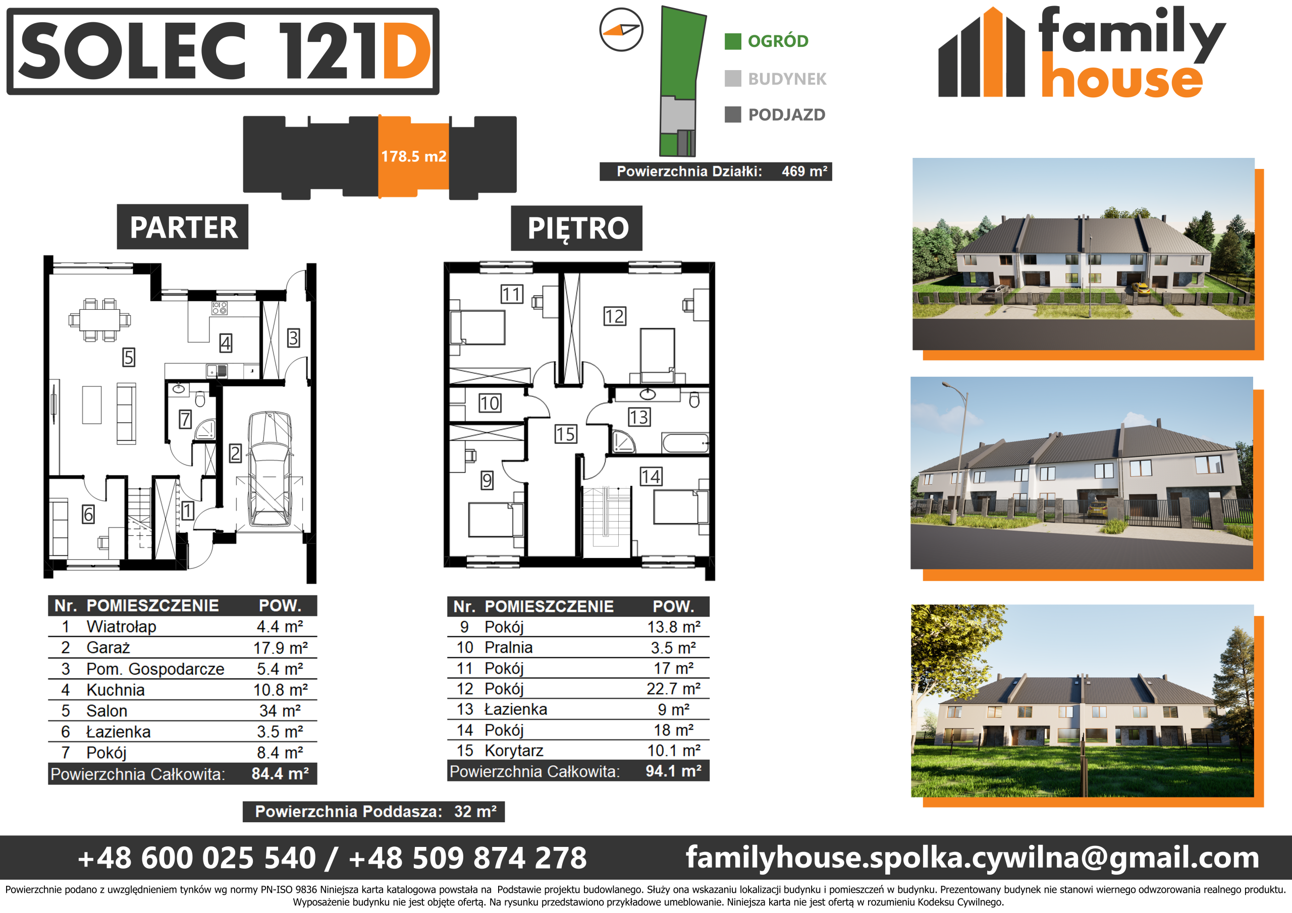 Powierzchnia: 166.62 m² Liczba pokoi: 6 Rodzaj zabudowy: szeregowiec Stan wykończenia: do wykończenia Ogrzewanie:gazowe Informacje dodatkowe: garaż/miejsce parkingowe Powierzchnia działki: 469 m²